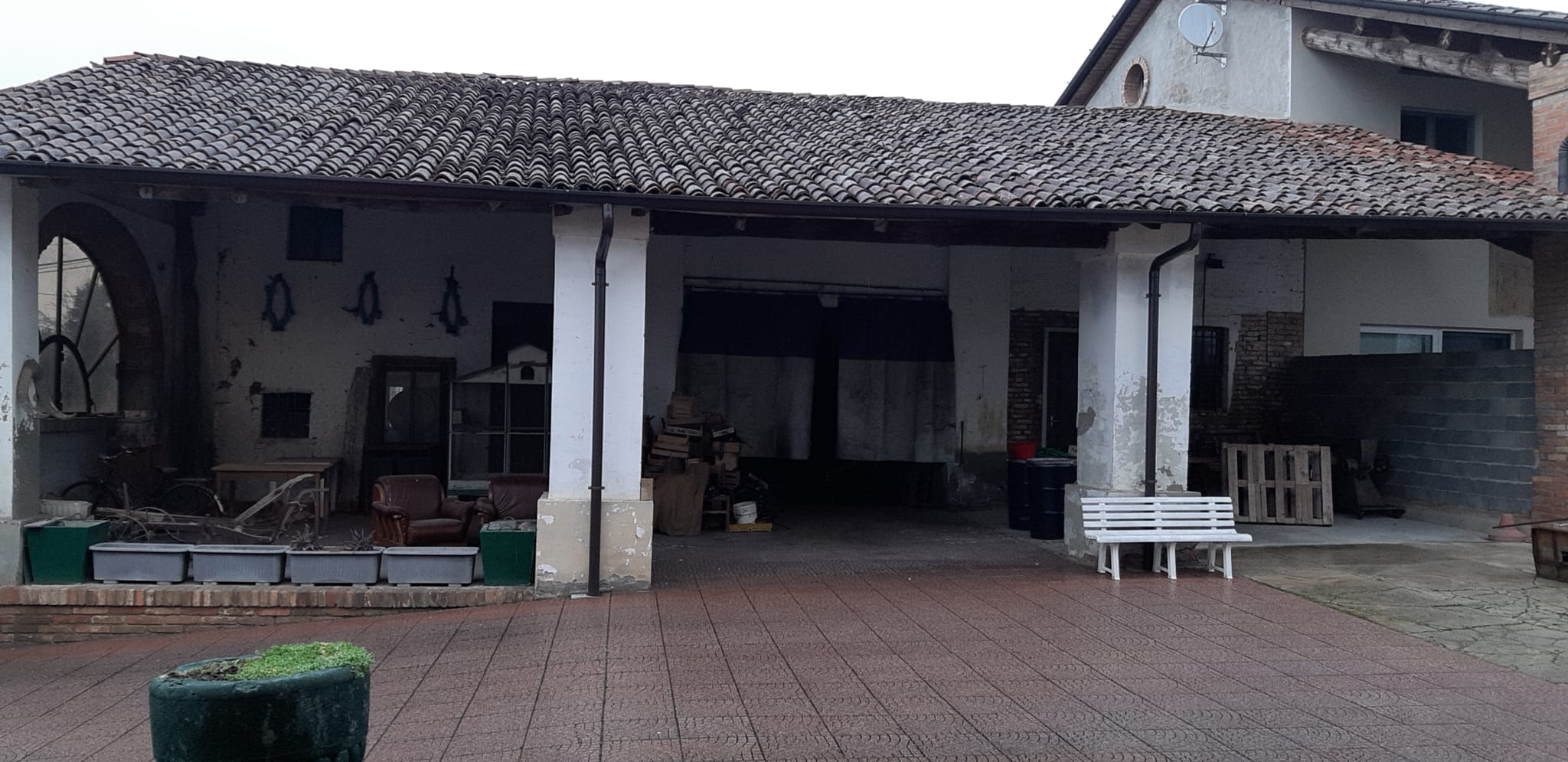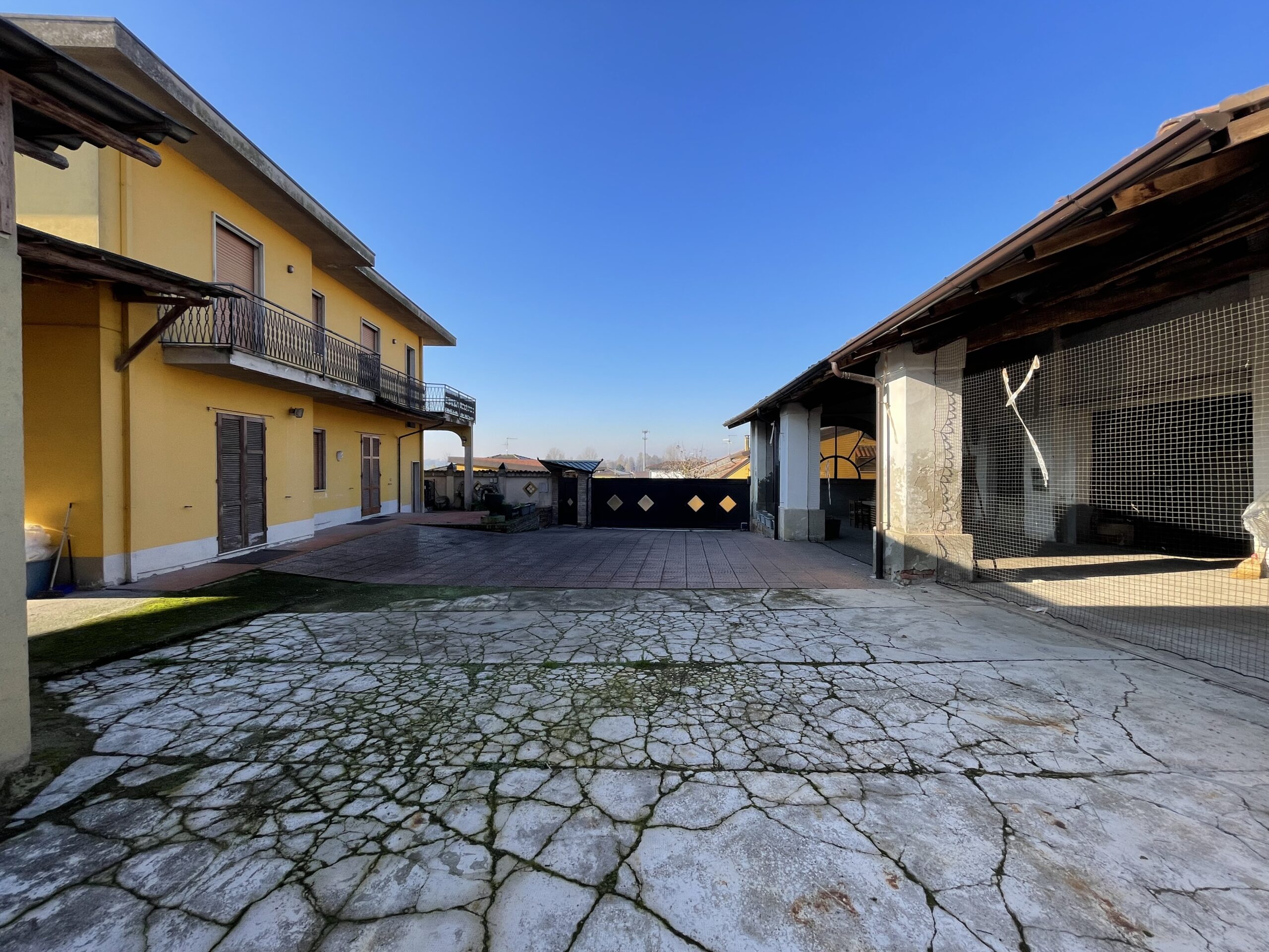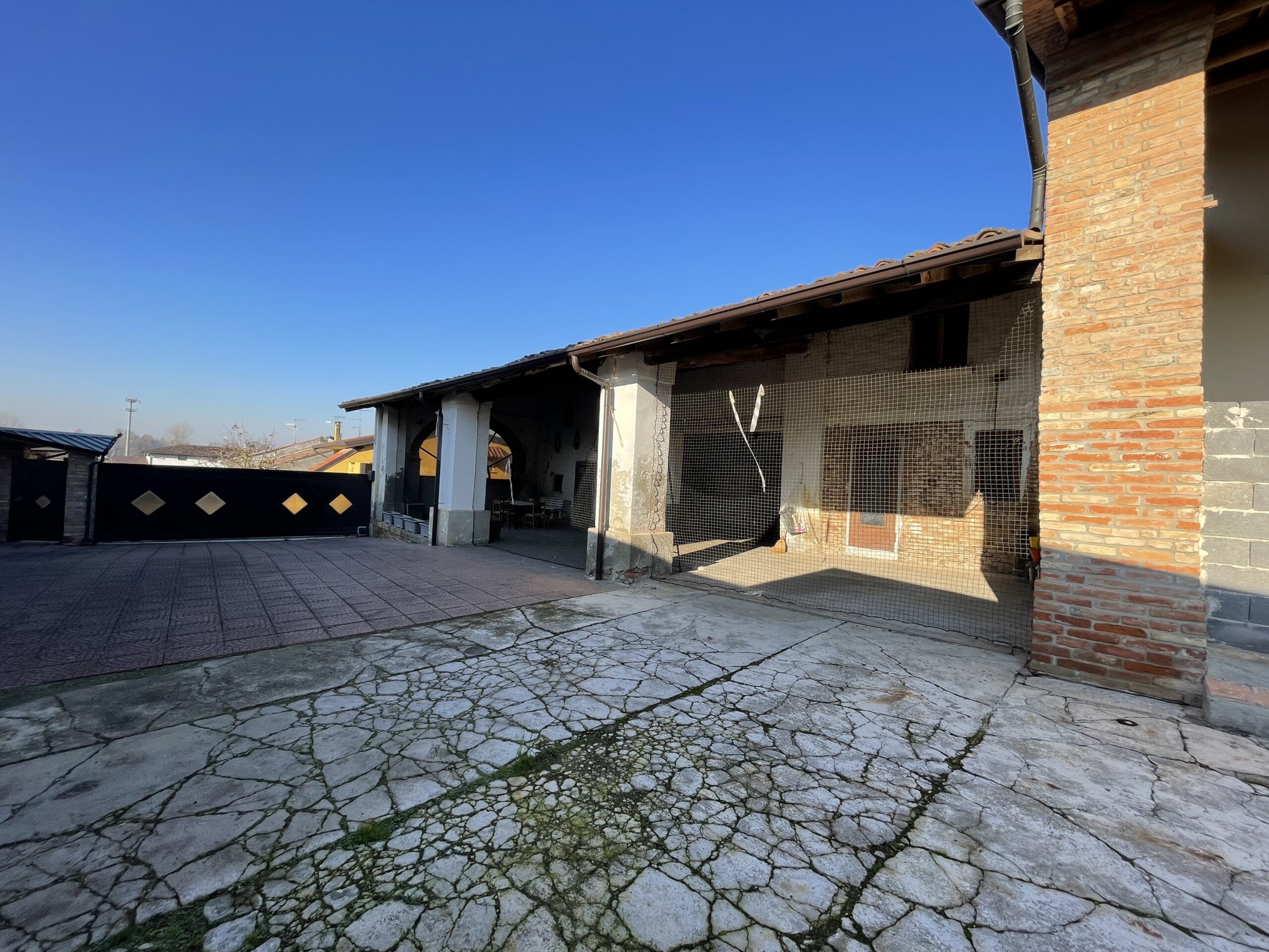 Il cortile è di circa 400 mq consente il parcheggio anche coperto sul fondo troviamo i box auto ed i ripostigli esterni della proprietà
