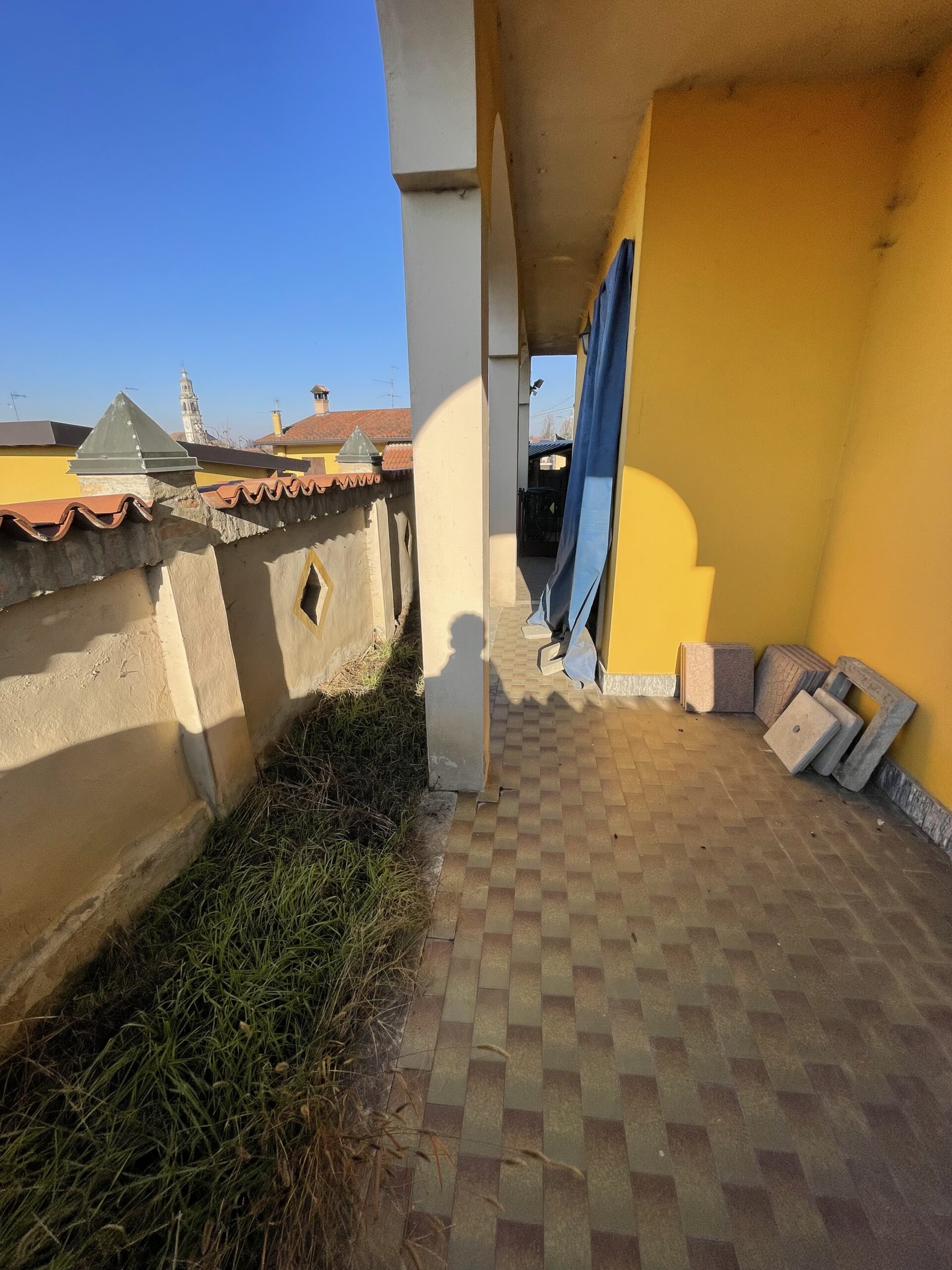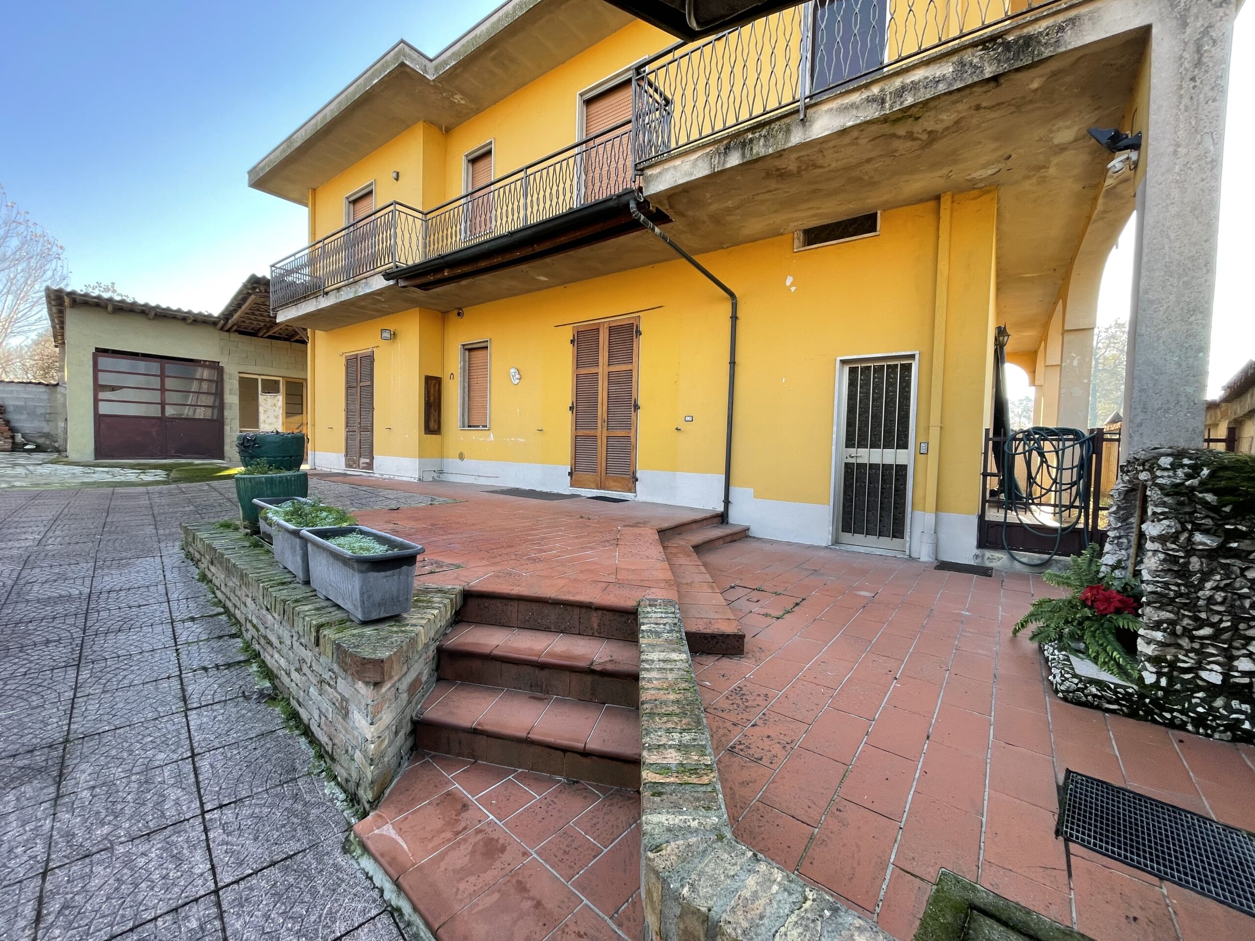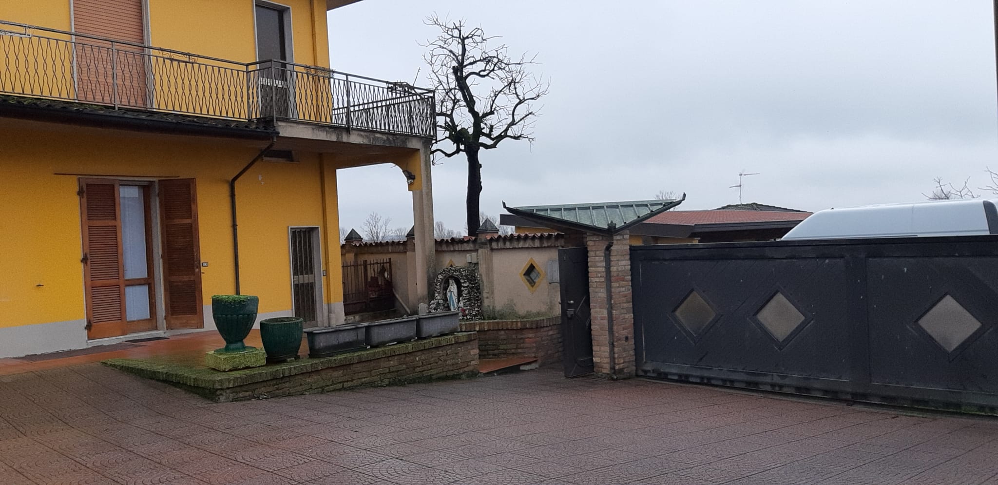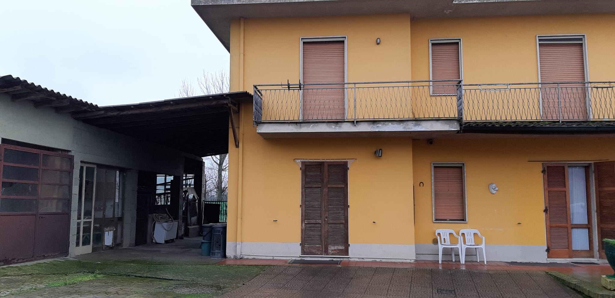 Il cortile è di circa 400 mq consente il parcheggio anche coperto sul fondo troviamo i box auto ed i ripostigli esterni della proprietà