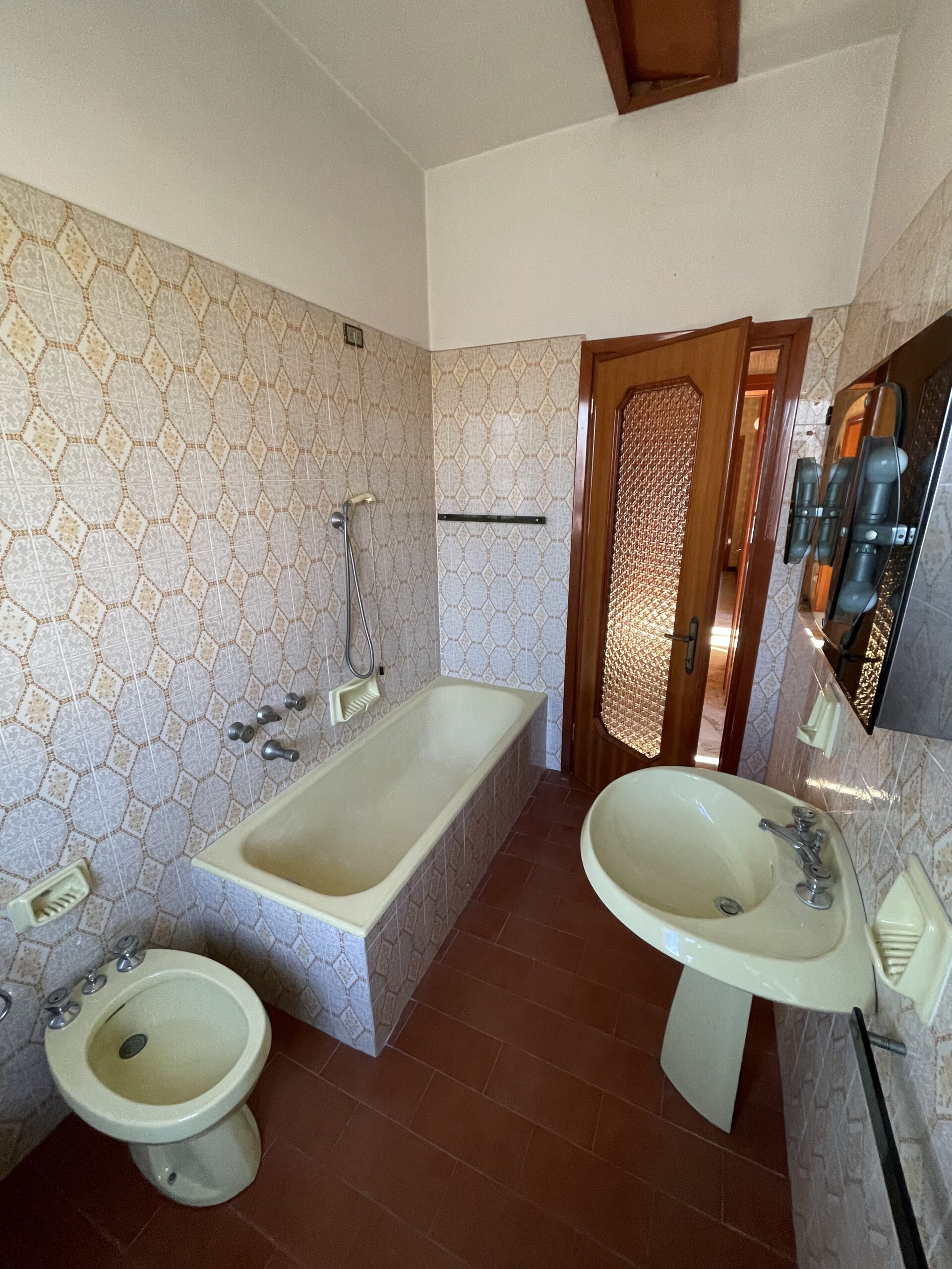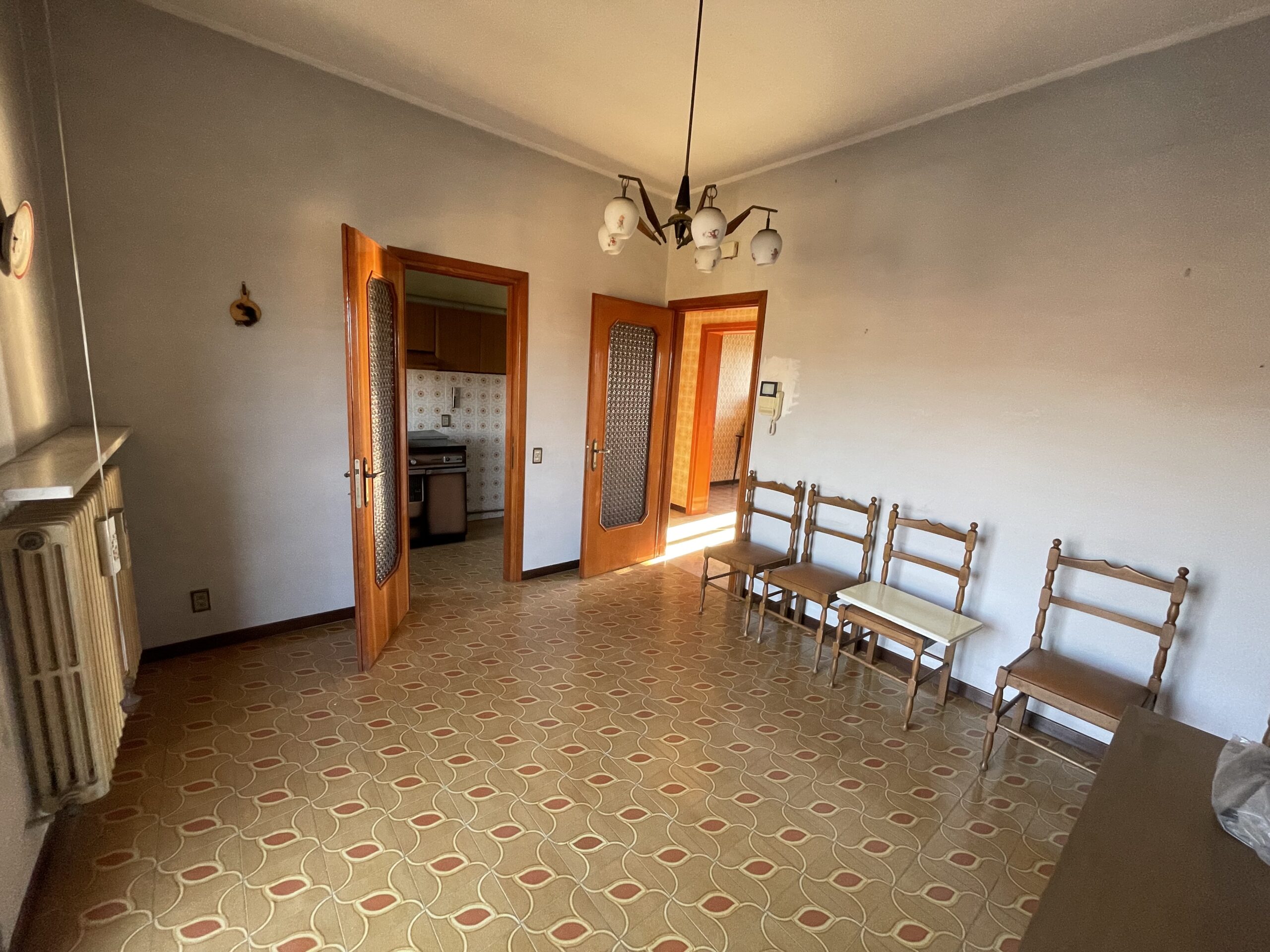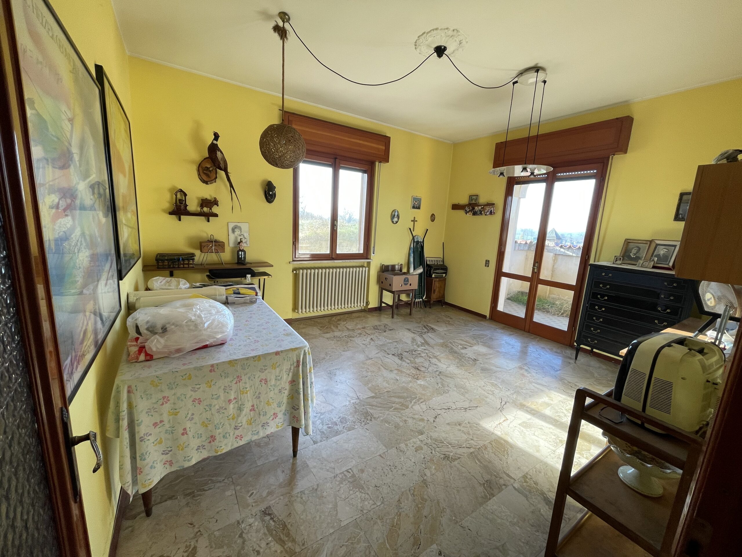 – piano terra: salone con tinello e terrazzino coperto, anticamera notte che divide le 2 spaziosissime camere da letto ed il bagno con finestra.