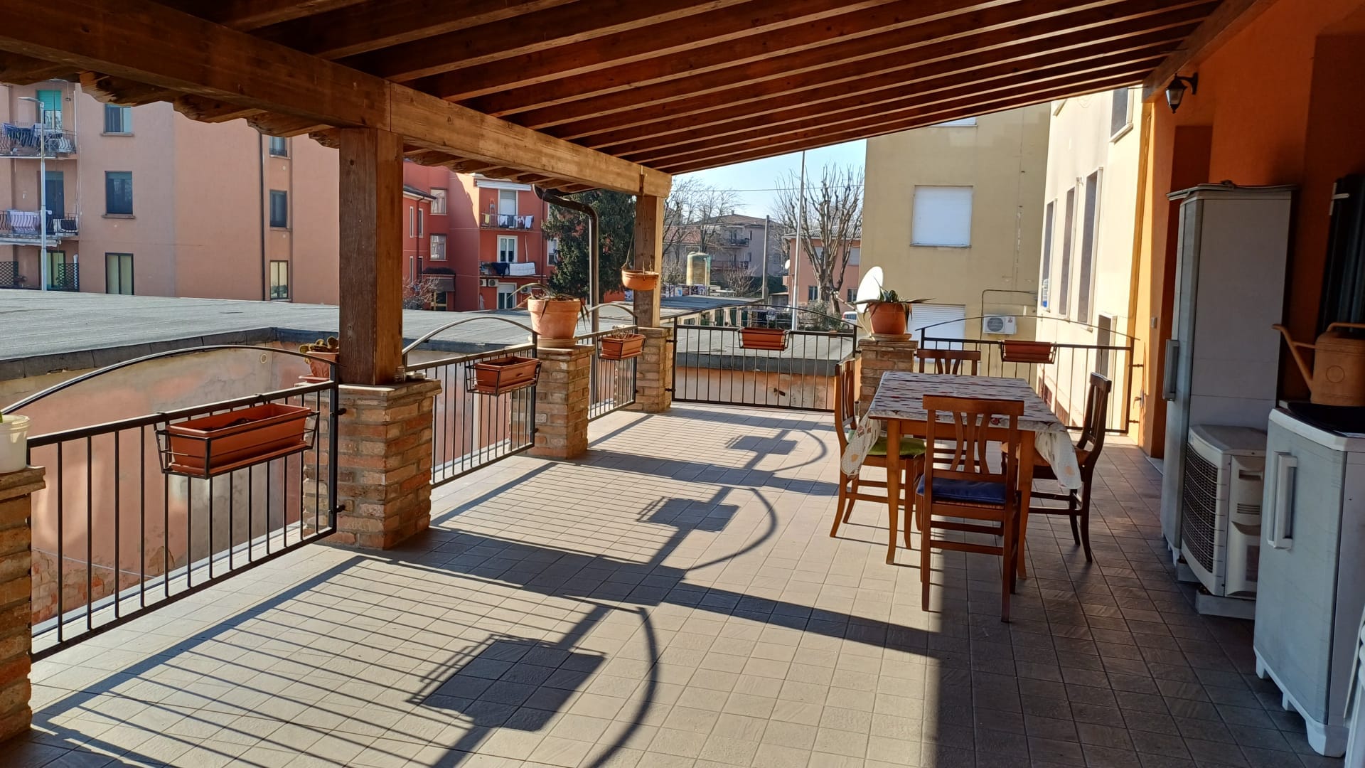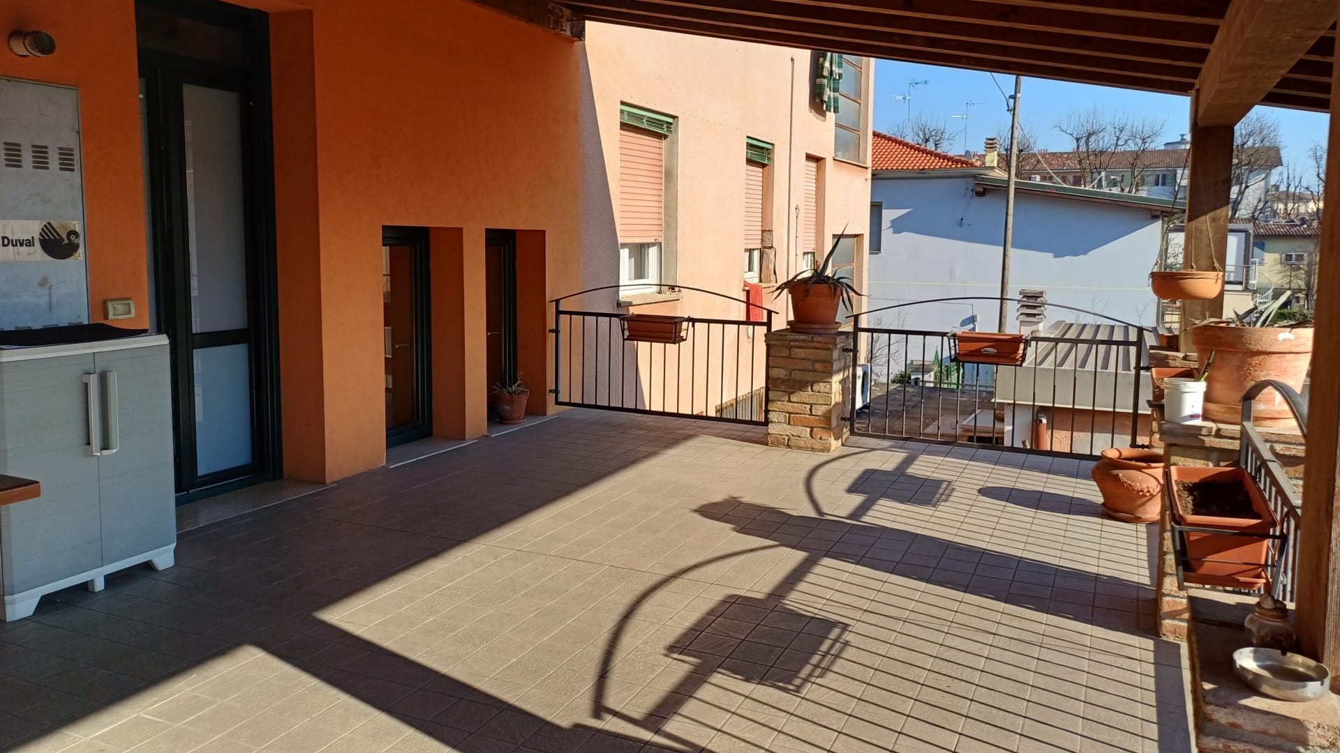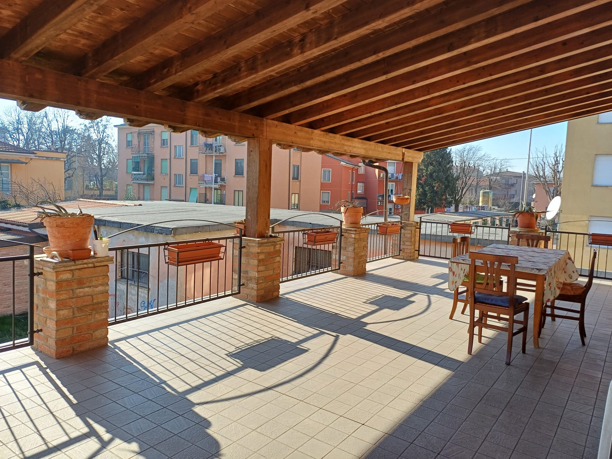 Con Giardino privato, appartamento duplex con ingresso indipendente tipo villa a schiera di circa 160 mq., composto da soggiorno, cucina + sala pranzo e grande bagno + ampio terrazzo coperto di mq. 46, al piano superiore 3 comode camere da letto, guardaroba, bagno padronale. Completano la proprietà circa 400mq di giardino privato, un ampio portico adibito a parcheggio coperto e un doppio box di mq. 40 con soppalco.