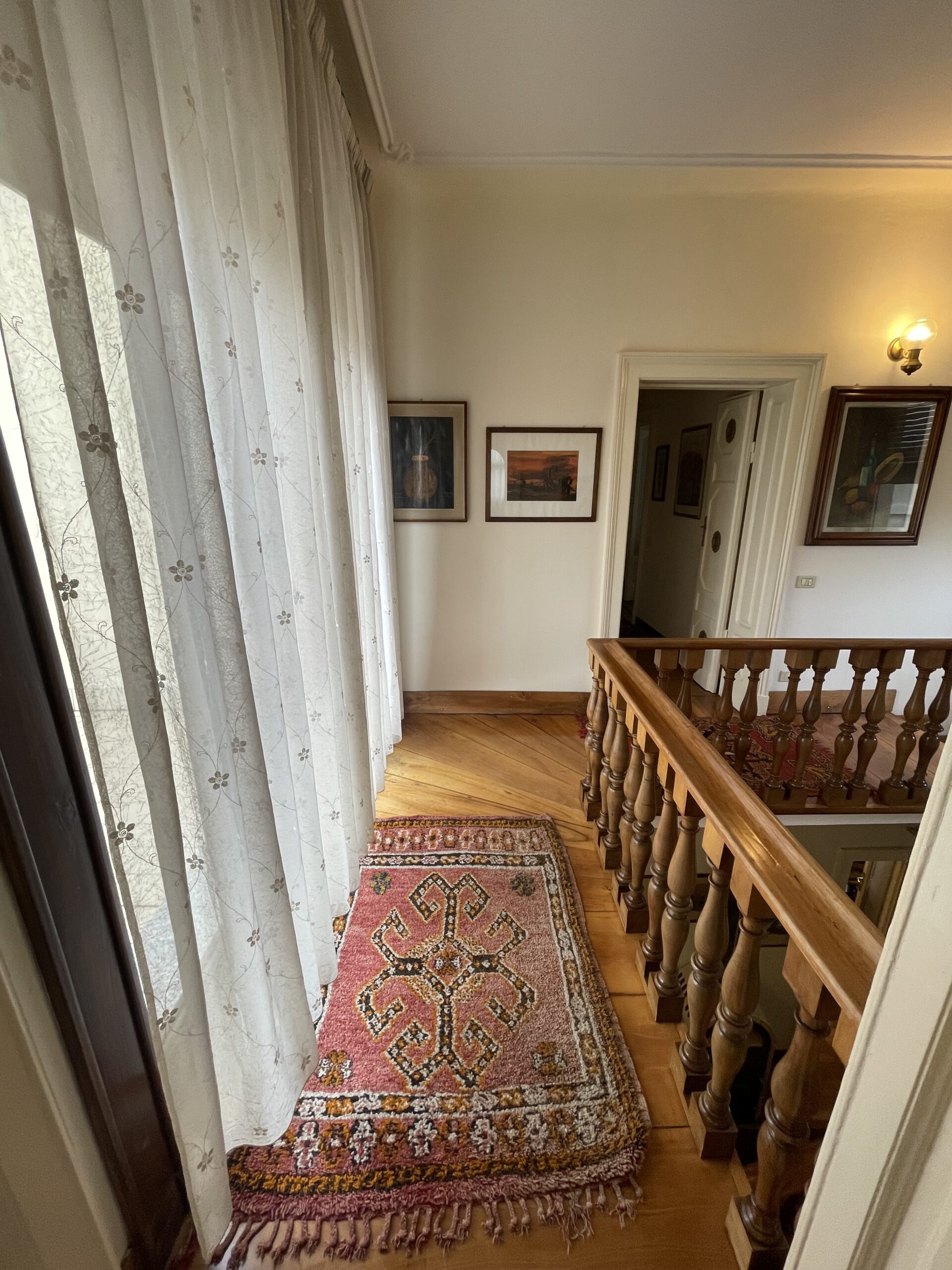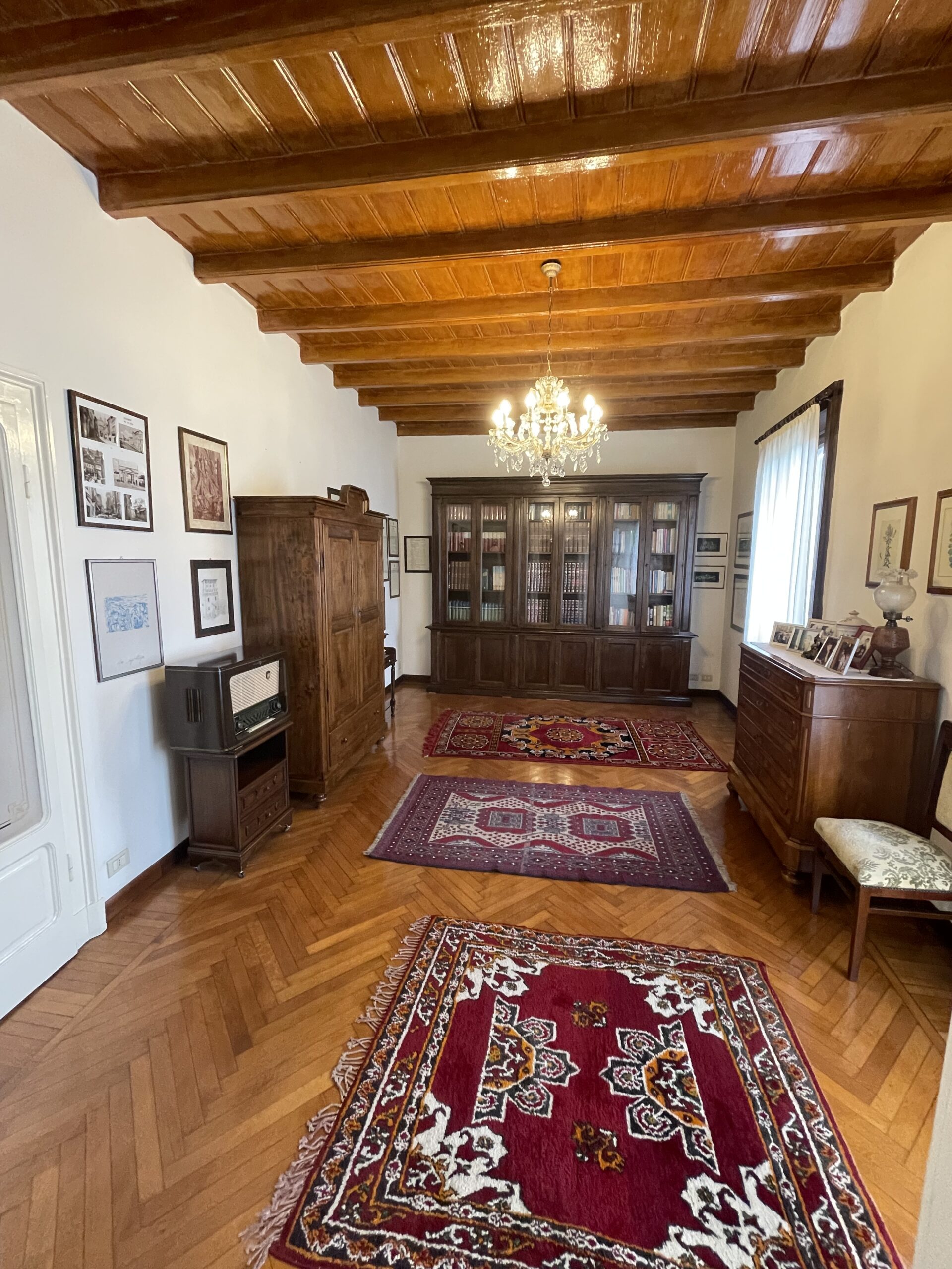 Piano primo mq 140 ampio salone, studio, cucina, due camere matrimoniali, due bagni, due terrazze, un balcone.
